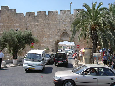 La Porte de Damas (Sha'ar Dameseq) Appelée aussi « Porte de Sichem » (שער שכם Sa'ar Shechem, en arabe: باب العامود Bab al'Amoud ou encore « Porte du Pilier »: bâtie en 1537 et située au milieu de la muraille Nord ; de cette porte sort un chemin qui mène directement à la ville de Sichem.
